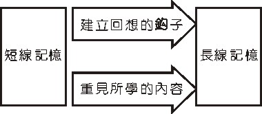 如何把學到的知識由短線記憶轉成長線記憶呢?短線記憶轉成長線記憶的要訣是建立回想的鈎子和在最短的時間內重見所學的內容。